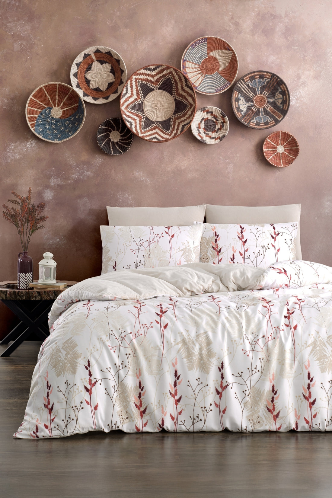 Boheme Serisi | Bej Çift Kişilik Pamuklu Desenli Nevresim Takımı | Lastikli Çarşaflı |
