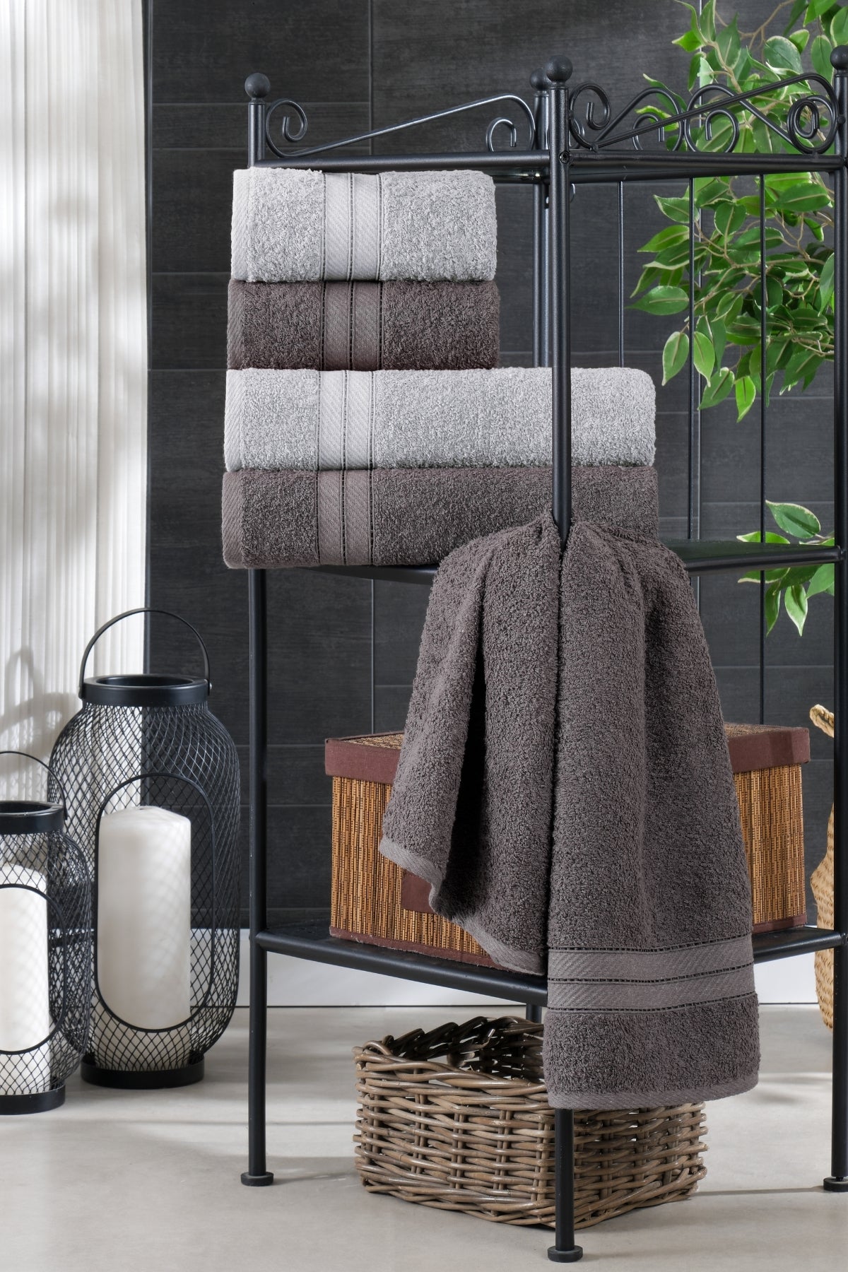 Kai 4'lü Banyo Havlu Seti | Pamuklu | Çeyiz Seti | Antrasit-Gri |