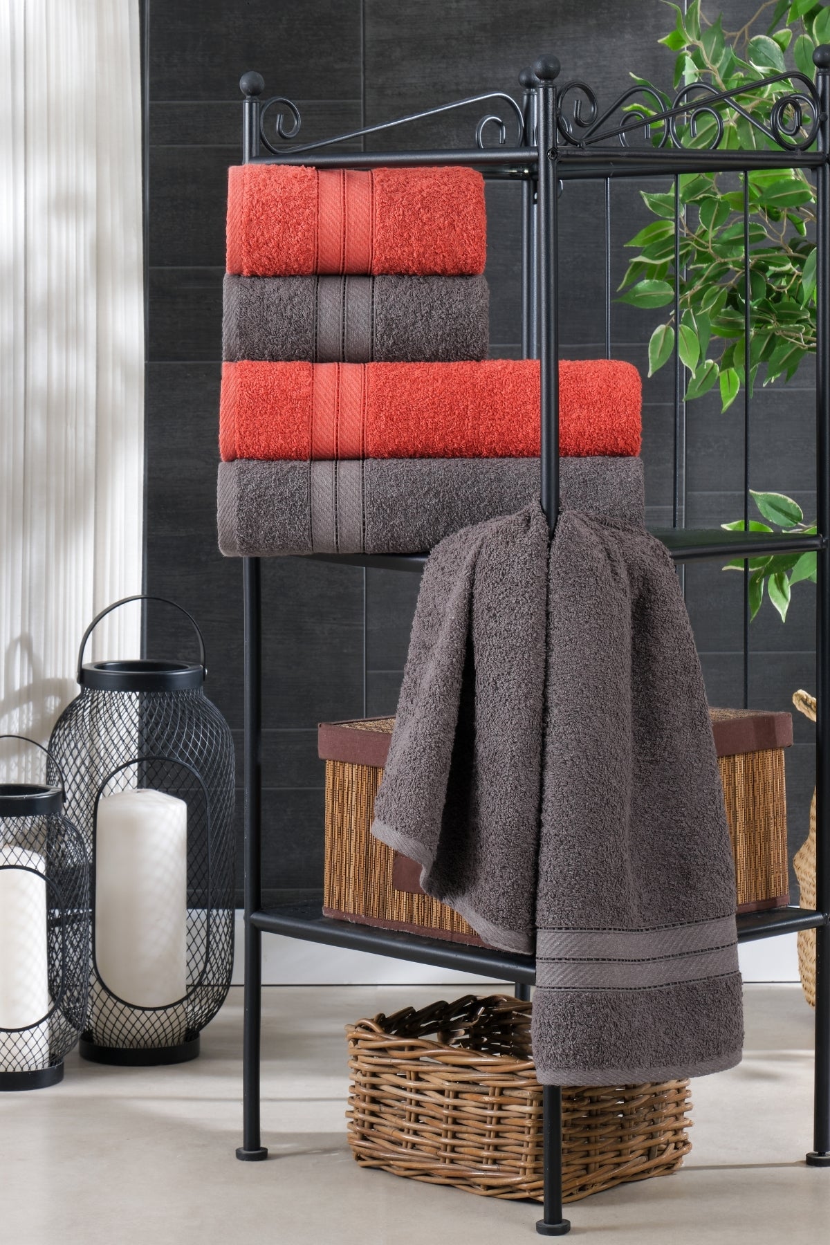 Kai 4'lü Banyo Havlu Seti | Pamuklu | Çeyiz Seti | Antrasit-Kiremit |