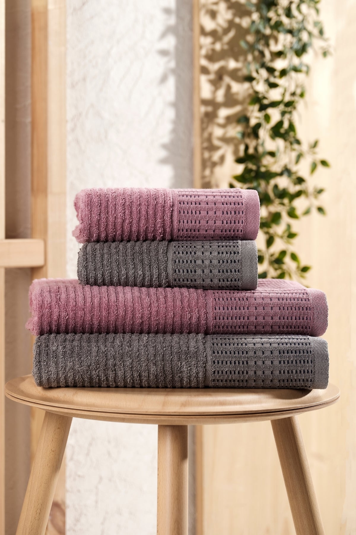 Karaca 4'lü Battal Boy Banyo Havlu Seti | Pamuklu | Çeyiz Seti | Antrasit-Mürdüm|