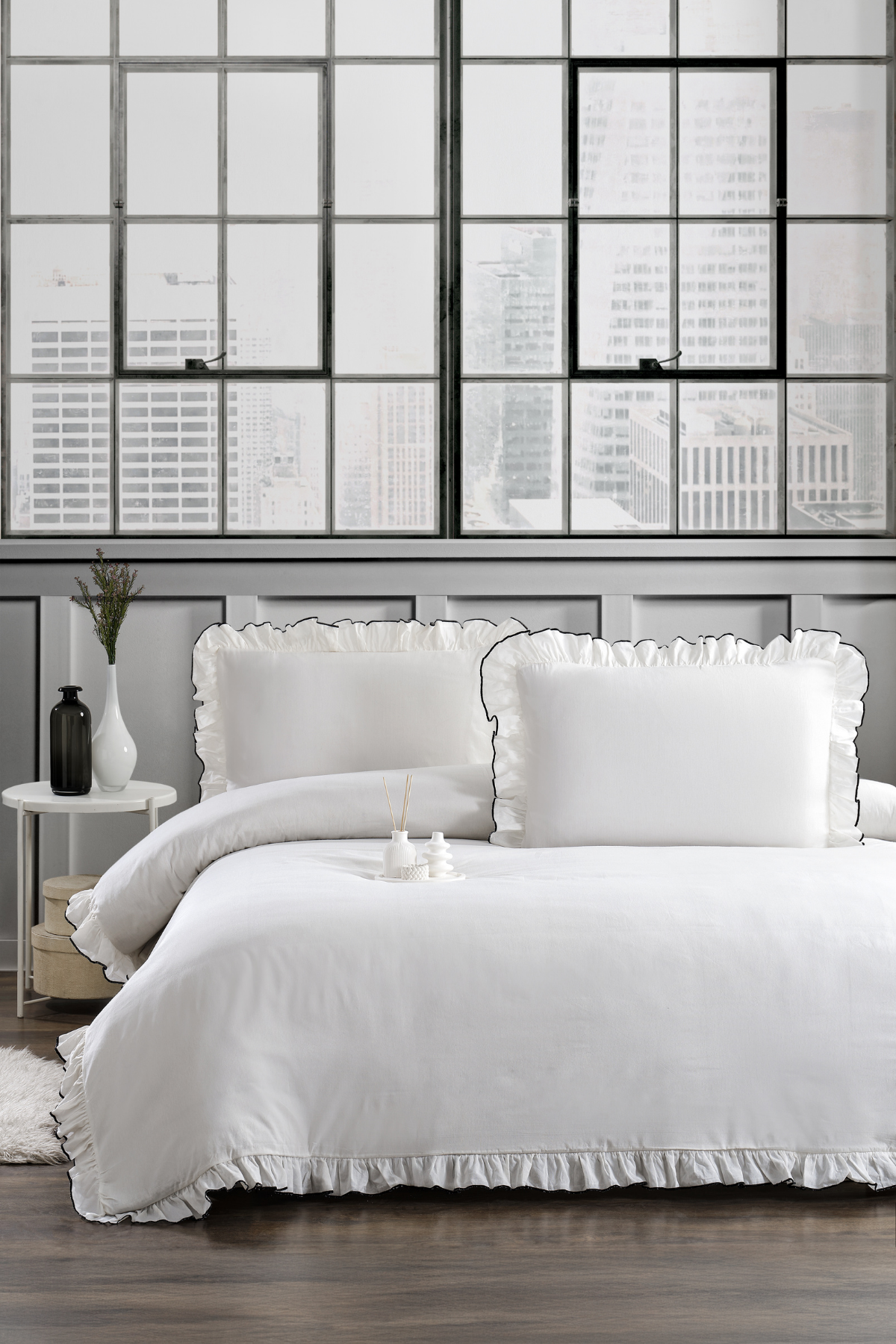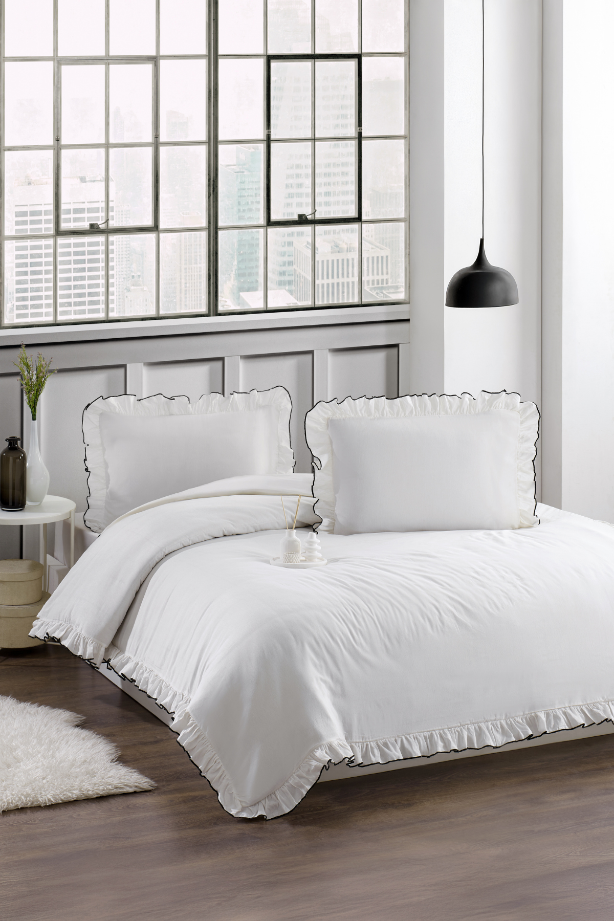 Krem Fırfırlı Çift Kişilik Nevresim Seti