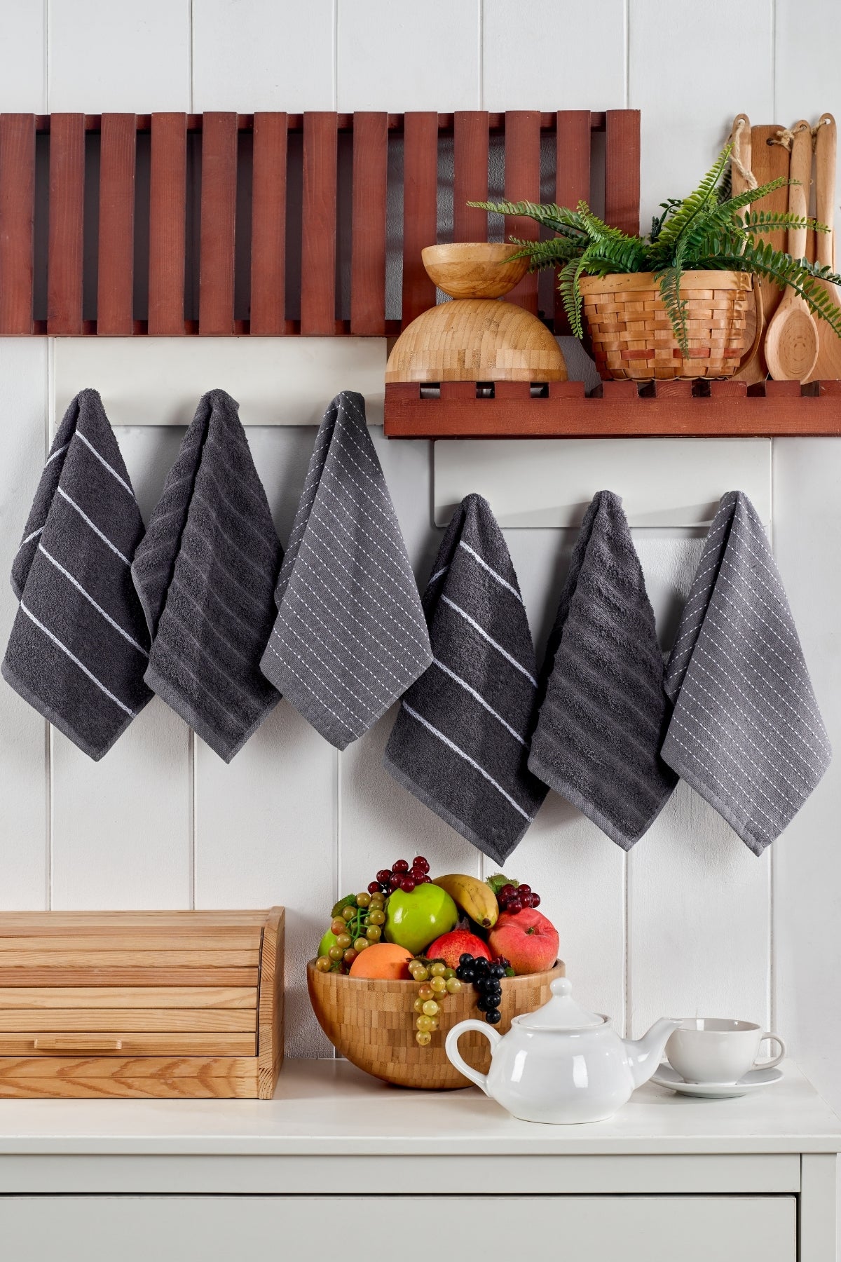 Yonca 6'lı El Yüz Havlu Seti 30x50cm | Mutfak Havlusu | Pamuklu | Antrasit |