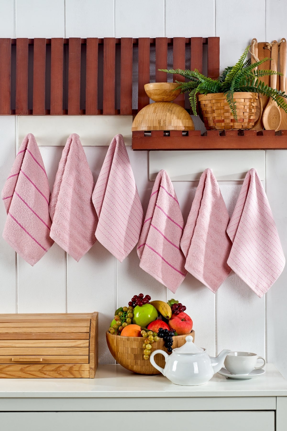 Yonca 6'lı El Yüz Havlu Seti 30x50cm | Mutfak Havlusu | Pamuklu | Pudra |